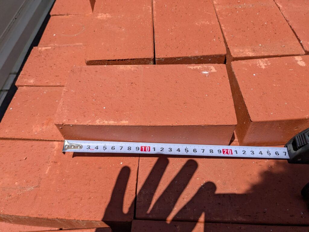 今回使用するレンガは210×100×60mmの赤レンガをつかいます(税込み148円/個)