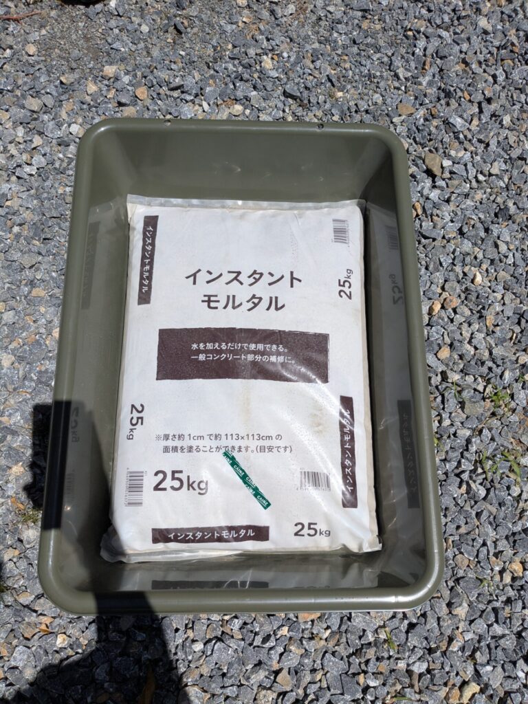 今回使用するモルタルは25kg売りのものです。(税込み748円)